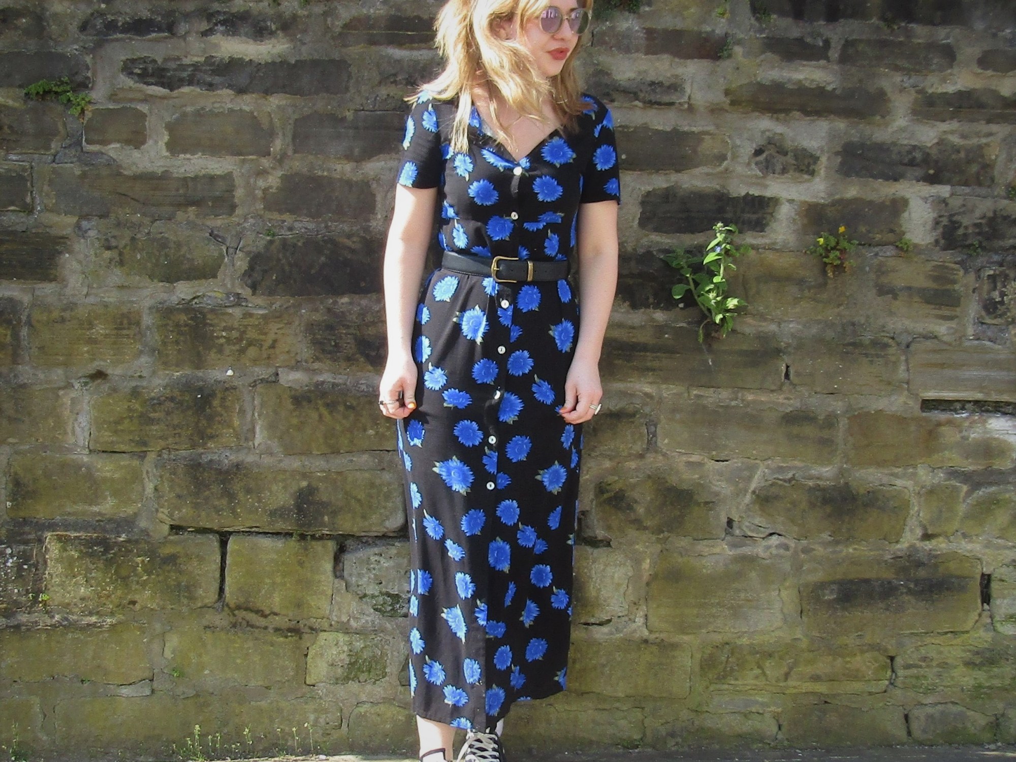 This Topshop dress ticks all my boxes, I’ve featured it on here a few months back but styled with tights and docs for a wintery look. Here worn in the sun, it is shown off best, worn simply with a waist belt and converse. The dress is super lightweight and figure-flattering, creating a clean silhouette. However, the buttons are VERY unreliable; a rogue boob or knicker flash is inevitable. This is why I employ my boyfriend as main button watcher for the duration of time that I am wearing it!